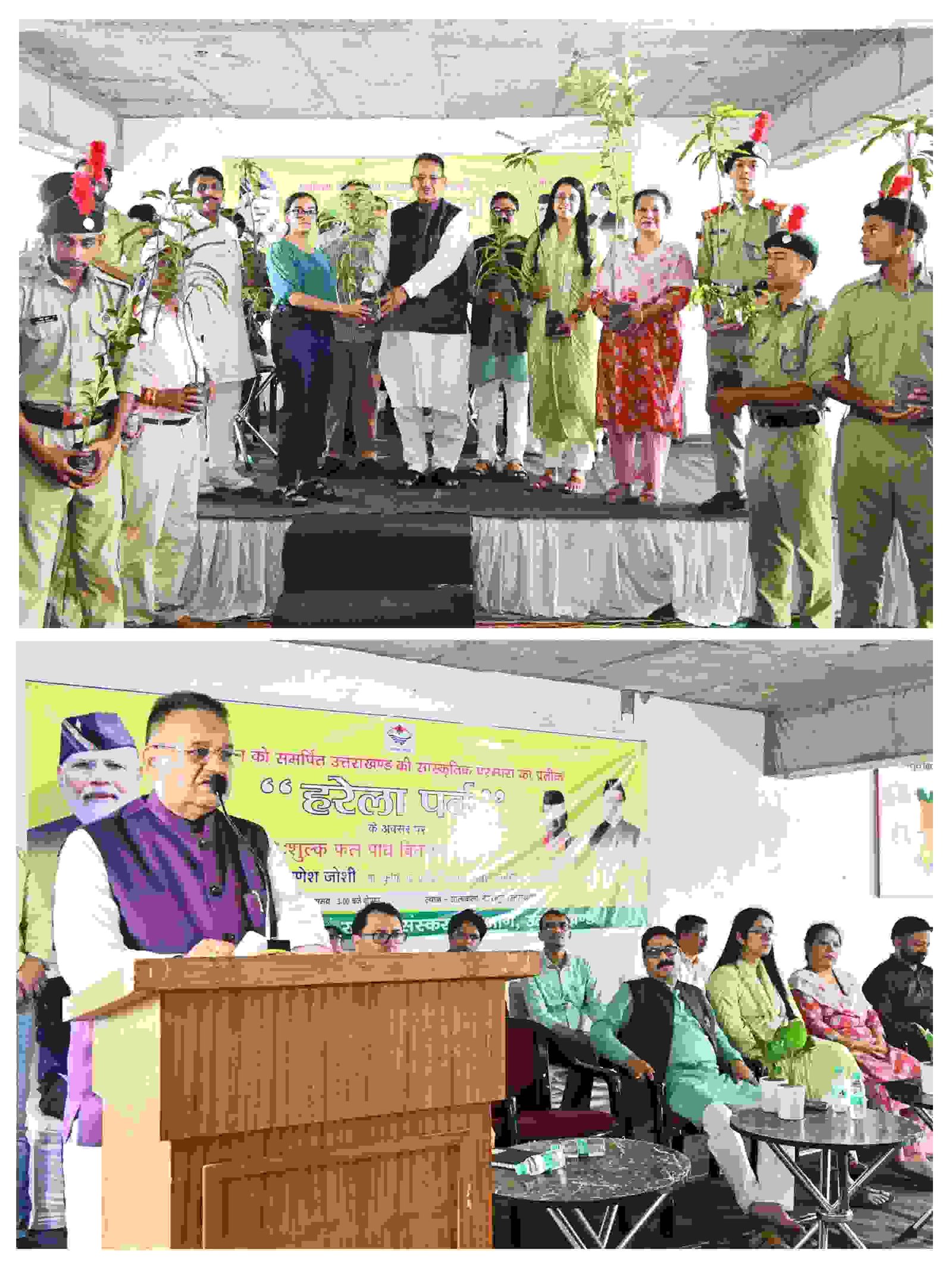 कृषि मंत्री गणेश जोशी ने हरेला पर्व पर फल पौध वितरण कार्यकर्म में शिकरत की ओर कार्यकर्ताओं को 5 -5 पौध वितरित किए।