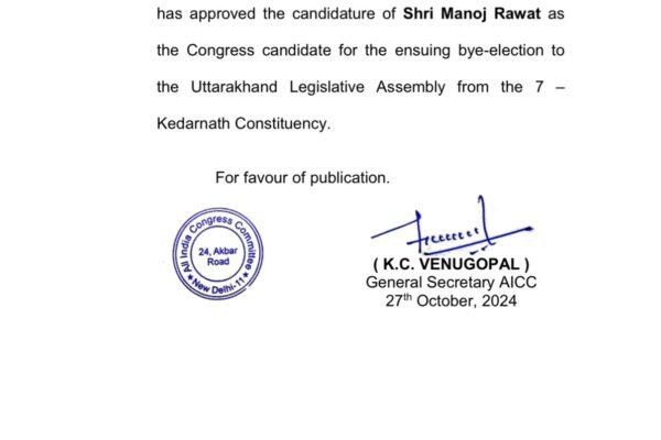 केदारनाथ उपचुनाव के लिए कांग्रेस हाई कमान ने की प्रत्याशी की घोषणा