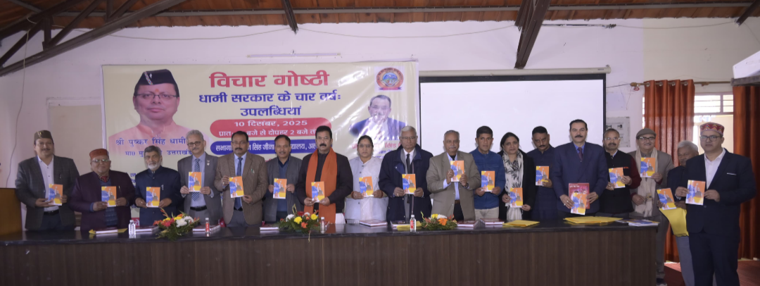 मुख्यमंत्री पुष्कर सिंह धामी के नेतृत्व में राज्य सरकार के चार वर्ष पूर्ण होने के उपलक्ष्य में सोबन सिंह जीना विश्वविद्यालय अल्मोड़ा में कुलपति सतपाल सिंह बिष्ट की अध्यक्षता में विचार गोष्ठी आयोजित की गई।