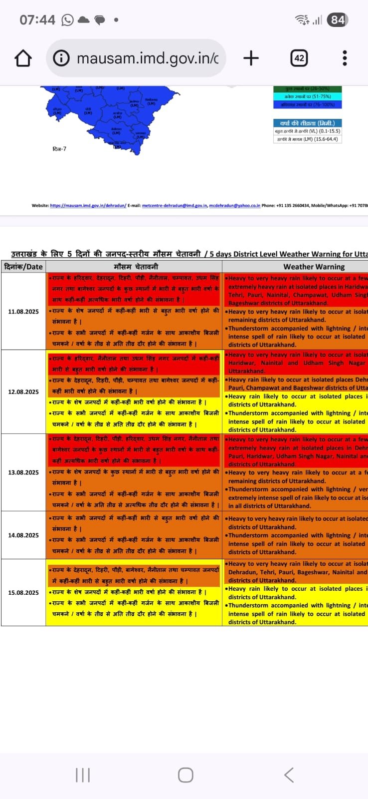 देहरादून, टिहरी, पौड़ी, चंपावत,और बागेश्वर जिले में भारी बारिश की चेतावनी