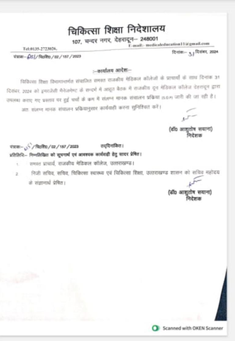 राजकीय मेडिकल कालेज देहरादून सहित प्रदेश के सभी मेडिकल कॉलेजों के साथ इमरजेंसी मैनेजमेंट को लेकर विचार विमर्श हुआ।