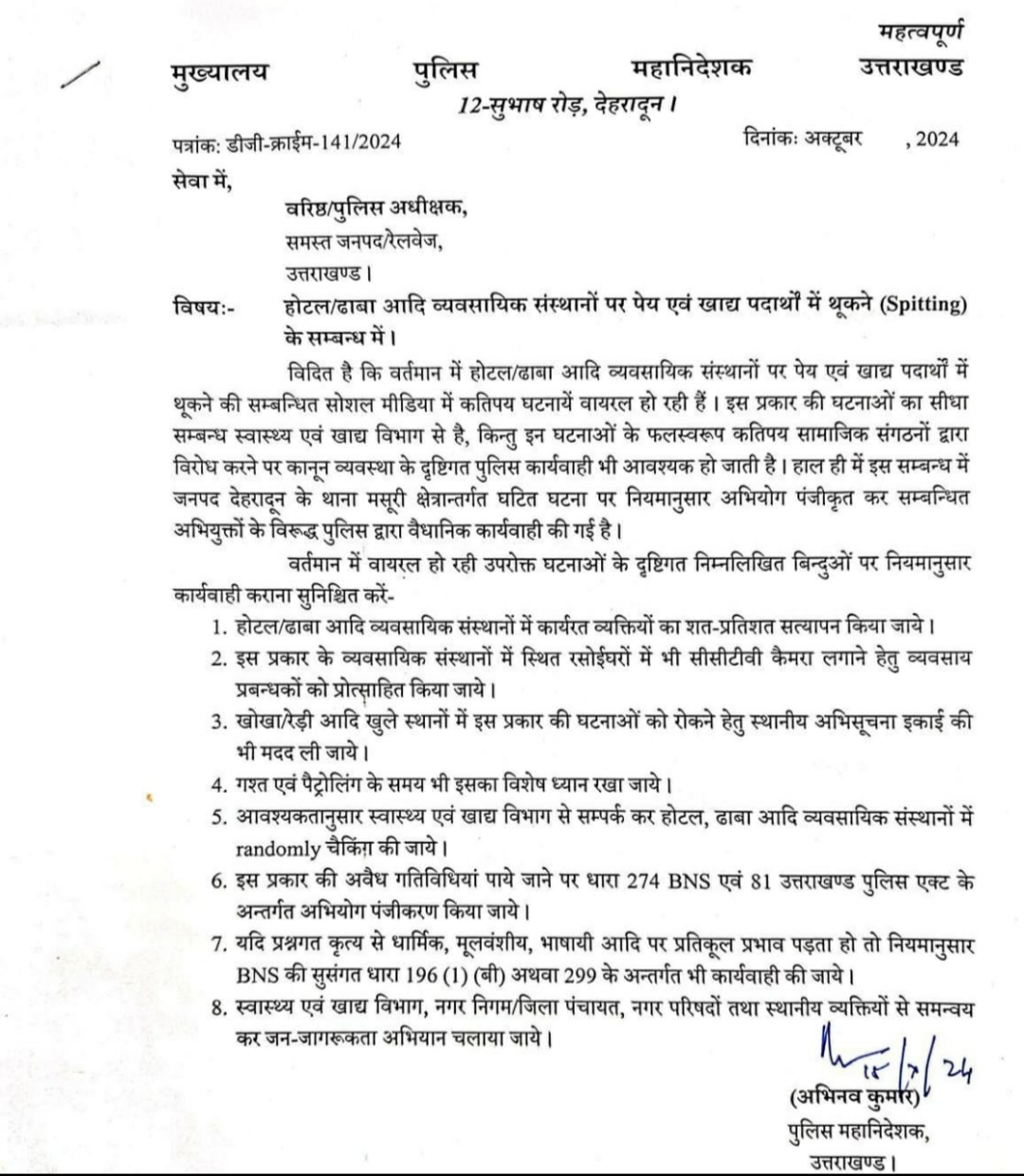 थूक जिहाद पर उत्तराखंड सरकार के साथ उत्तराखंड पुलिस भी हुई सख्त।