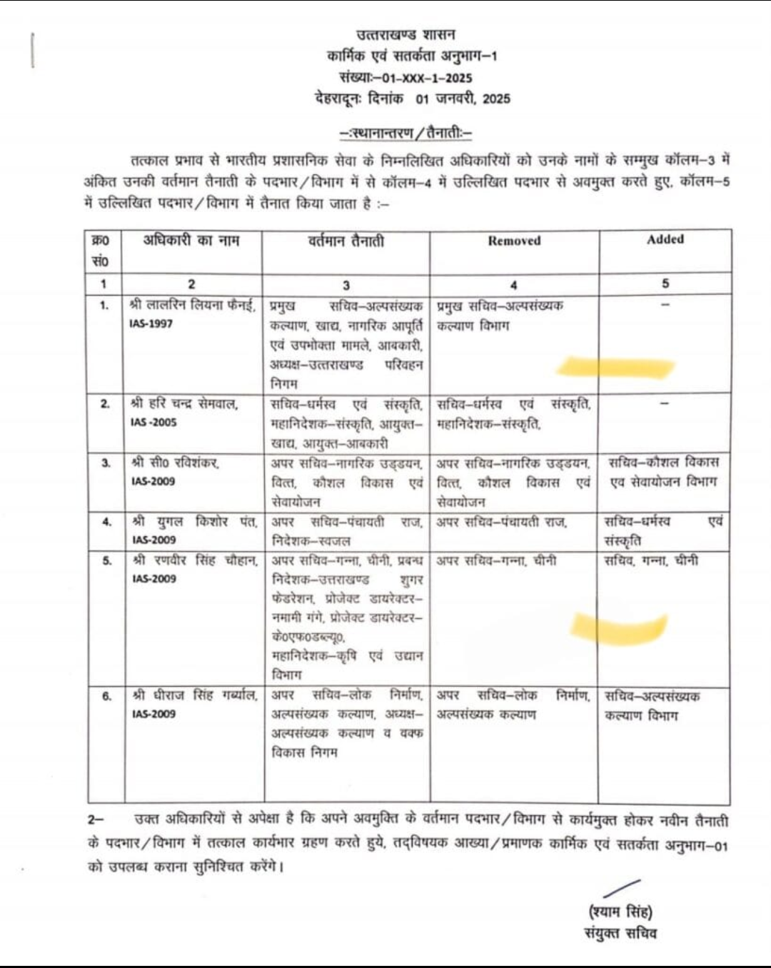 उत्तराखंड से बड़ी खबर आईएएस अधिकारियों के हुए तबादले