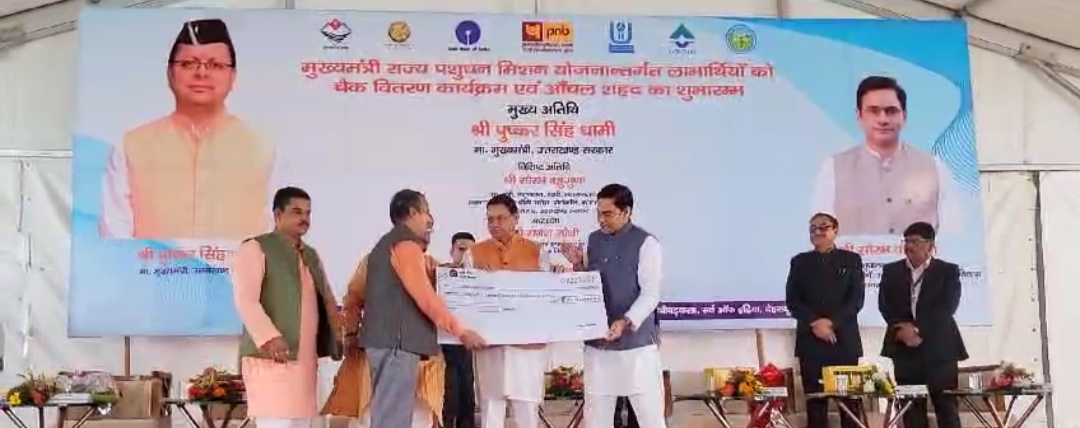 सीएम धामी ने ‘मुख्यमंत्री राज्य पशुधन मिशन’ योजनान्तर्गत लाभार्थियों को किए चैक वितरित