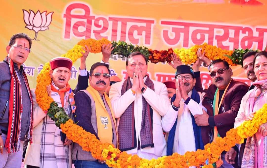 सीएम पुष्कर सिंह धामी ने नगरपालिका अध्यक्ष पद के दावेदार मस्ता सिंह नेगी के समर्थन में नई टिहरी के बौराड़ी गणेश चौक में की विशाल जनसभा,