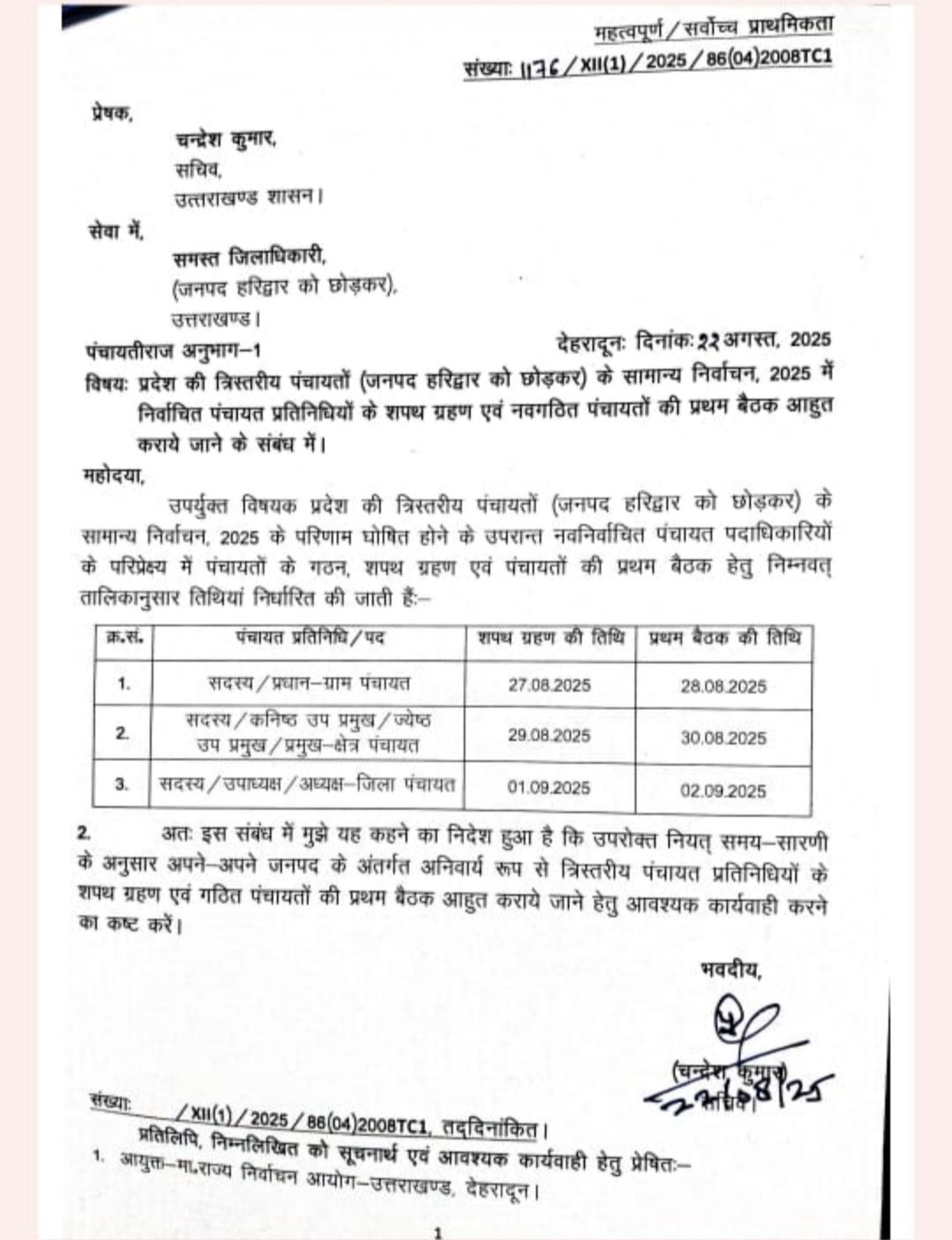 पंचायतों के नव निर्वाचित सदस्यों के शपथ ग्रहण की तारीख हुई घोषित,