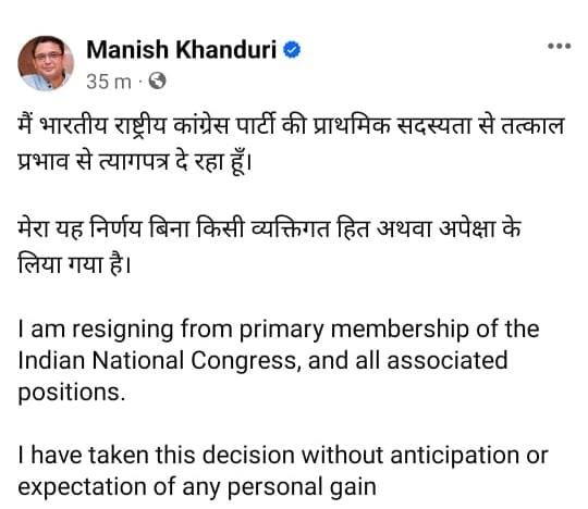 कांग्रेस प्रदेश अध्यक्ष करण मेहरा की माने तो जल्द ही पार्टी की तरफ से लोकसभा चुनाव के लिए प्रत्याशियों की घोषणा हो जाएगी… क्योंकि दिल्ली दरबार चल रहे मंथन का निष्कर्ष जल्द ही निकलने वाला है। कांग्रेस प्रदेश अध्यक्ष ने कहा कि मनीष खंडूरी के इस्तीफे की वजह क्या है यह उन्हें अभी तक मालूम नहीं है … लेकिन जहां तक पता चल रहा है वह पारिवारिक परिस्थितियों के चलते अपने पद से इस्तीफा दे रहे हैं।