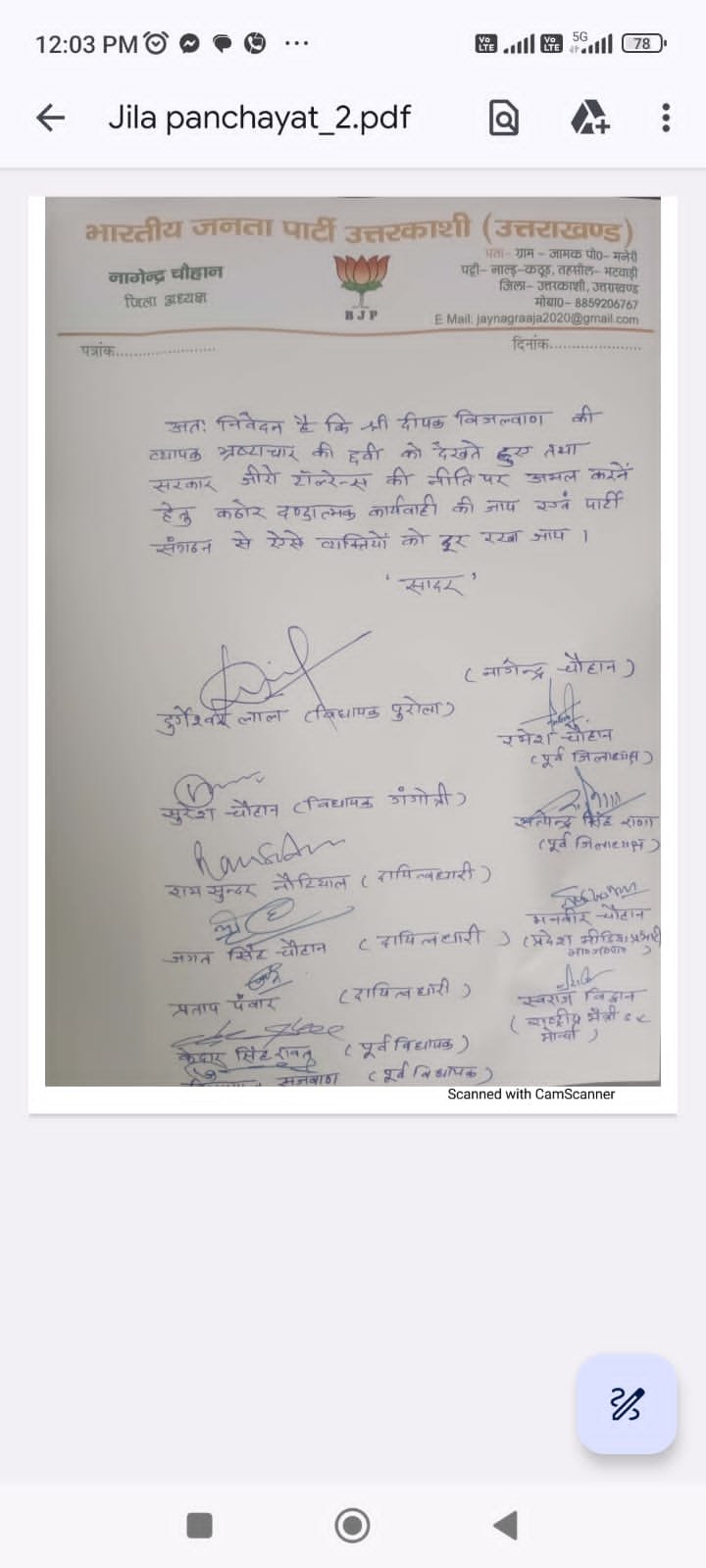 उत्तरकाशी के निवर्तमान जिला पंचायत अध्यक्ष दीपक विज्लवन को लेकर मचा घमासान,