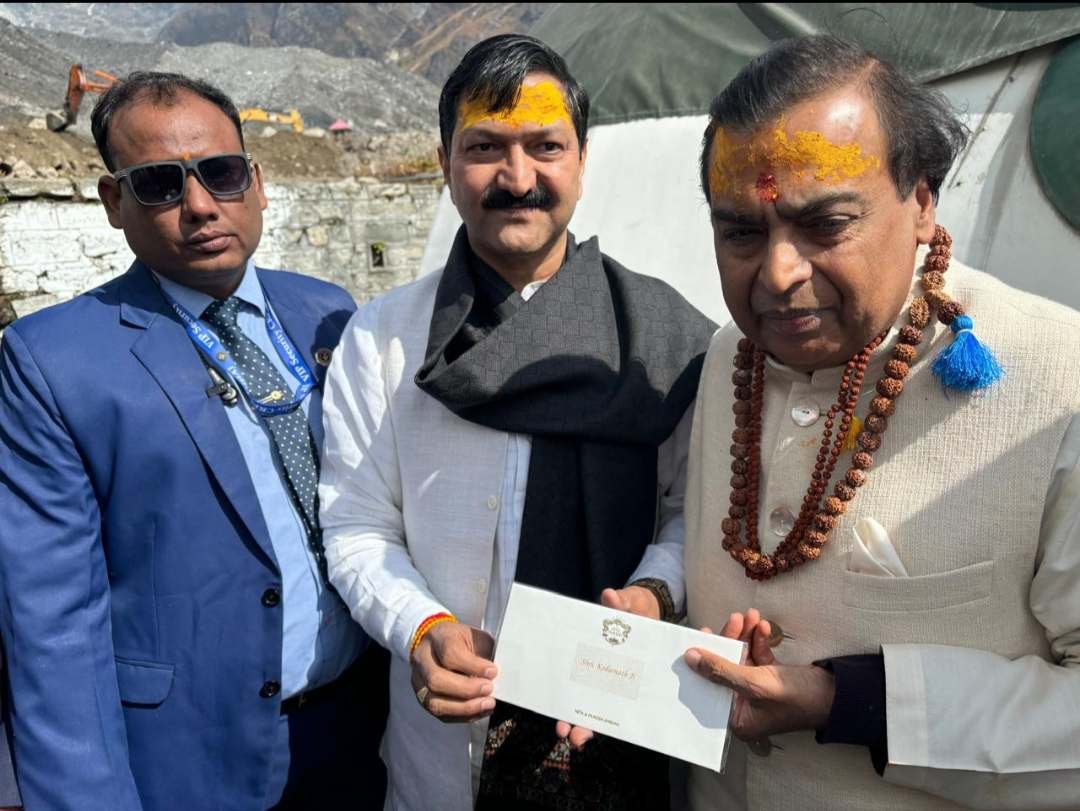 श्री केदारनाथ धाम में श्री बदरीनाथ – केदारनाथ मंदिर समिति (बीकेटीसी) अध्यक्ष अजेंद्र अजय ने मुकेश अंबानी का स्वागत किया।इससे पहले आज प्रात: 9 बजे मुकेश अंबानी श्री बदरीनाथ धाम पहुंचे सीधे मंदिर में दर्शन को पहुंचे उन्होंने वेदपाठ पूजा संपन्न की। उसके पश्चात मंदिर परिसर स्थित माता लक्ष्मी मंदिर में भी दर्शन किये।