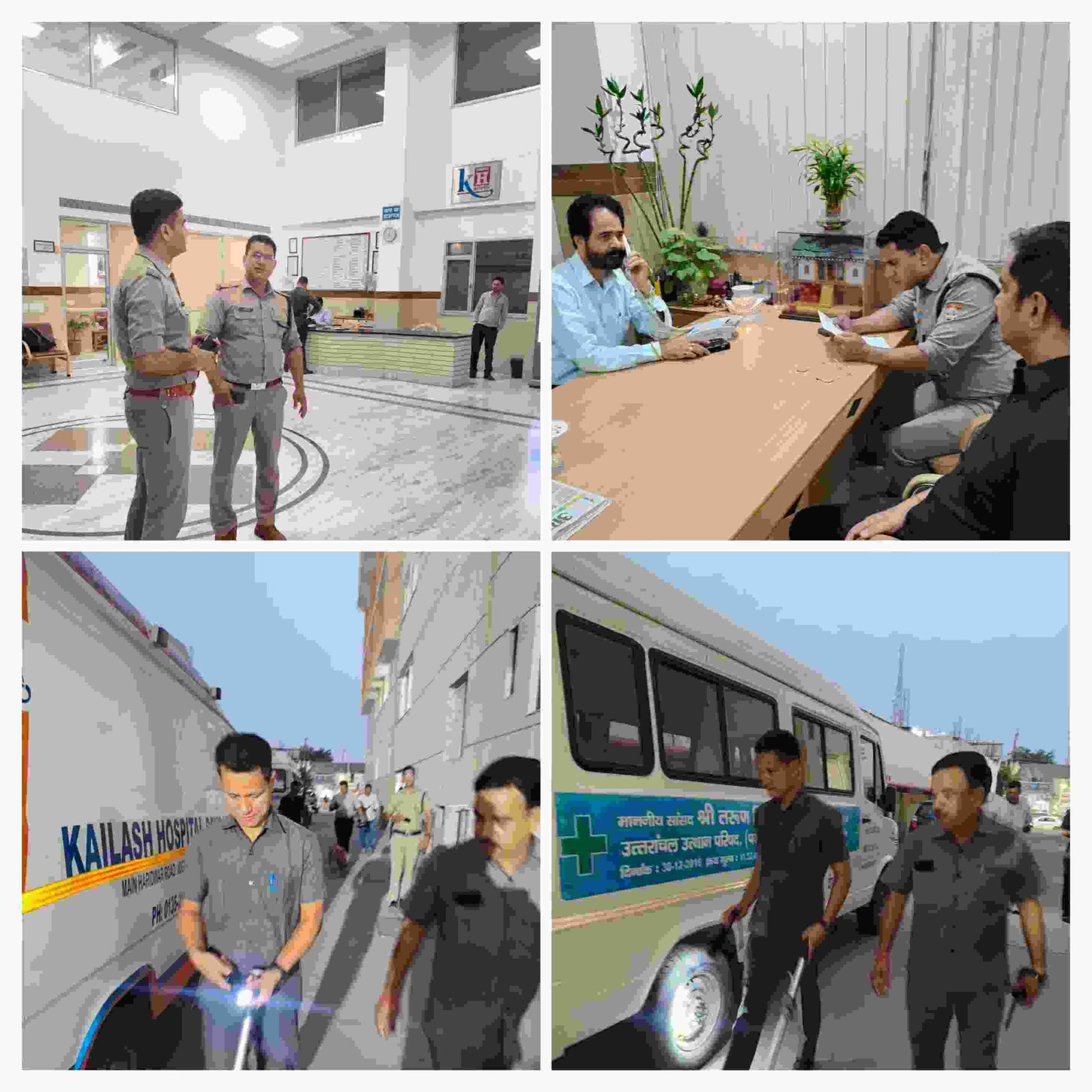 प्रकरण की गंभीरता की दृष्टिगत वरिष्ठ पुलिस अधीक्षक देहरादून द्वारा पुलिस टीम को आवश्यक निर्देश दिए गए जिस पर पुलिस टीम द्वारा तत्काल एसओजी टीम,बम स्क्वायड तथा डॉग स्क्वॉड के साथ मौके पर पहुंचकर प्रत्येक वार्ड, ओपीडी, बेसमेंट, पार्किंग तथा अन्य संवेदनशील स्थानों की बम स्क्वायड एवं डॉग स्क्वायड द्वारा सघन चेकिंग की गई। चेकिंग के दौरान किसी भी प्रकार की कोई संदिग्ध वस्तु प्राप्त नहीं हुई इसके उपरांत अस्पताल प्रशासन को अतिरिक्त सतर्कता बढ़ते जाने हेतु आवश्यक निर्देश दिए गए। यह भी संज्ञान में आया है कि कैलाश हॉस्पिटल की अन्य शाखों गाजियाबाद आदि को भी इसी प्रकार के धमकी भरे ईमेल भेजे गए हैं।