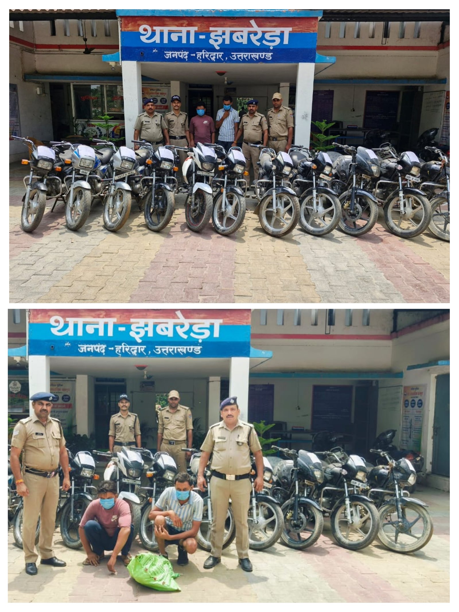 अंतरराज्यीय दुपहिया वाहन चोर गिरोह के 02 शातिरों को दबोचा, चोरी की 1 दर्जन मोटर साइकिलें बरामद