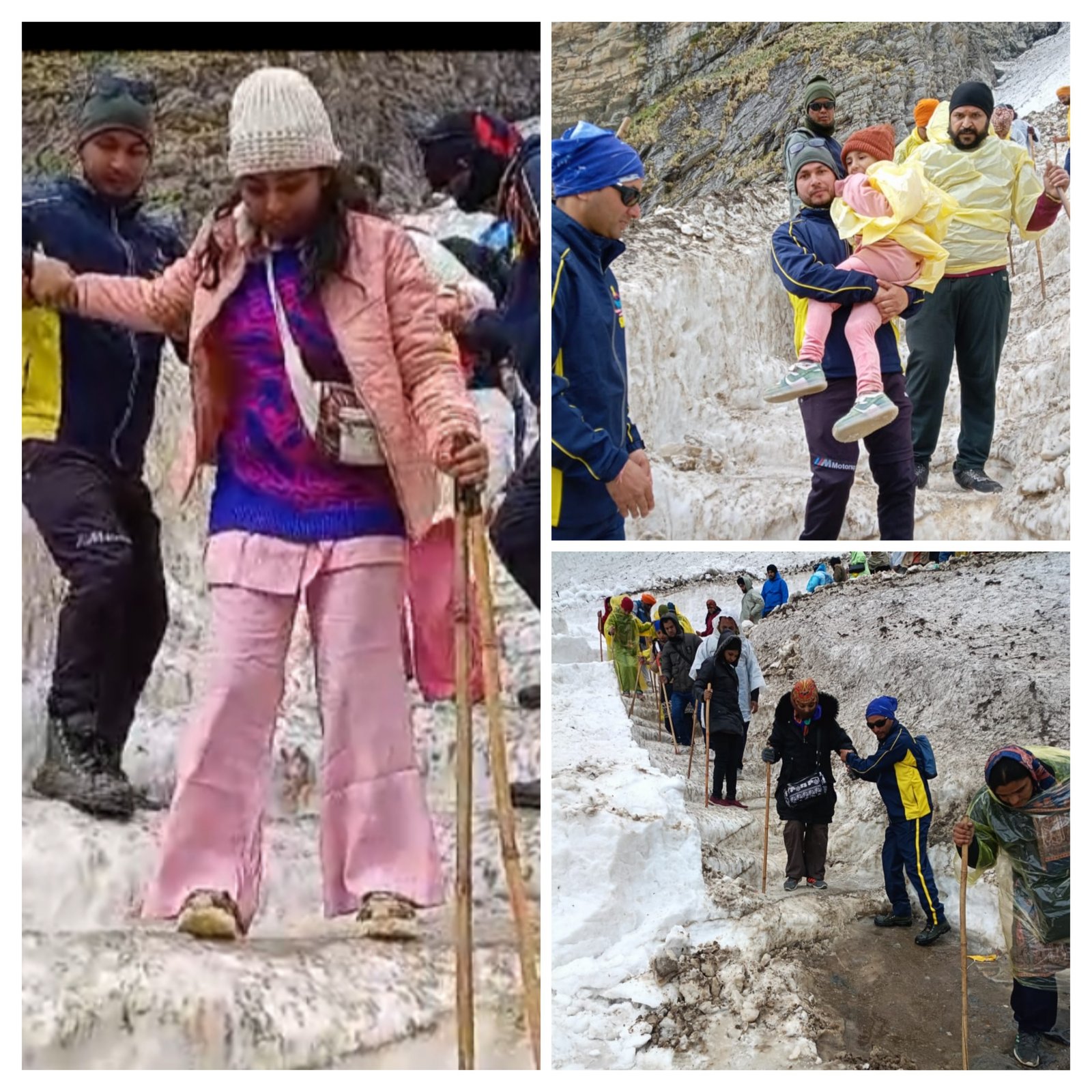 एसडीआरएफ के जवान एक-एक श्रद्धालु को अपने सुरक्षा घेरे में ग्लेशियर पार कराते हैं, ताकि कोई भी अप्रिय घटना न हो।