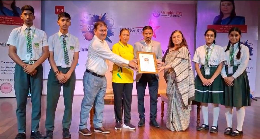 खेल मंत्री रेखा आर्या ने ग्राफिक एरा हिल यूनिवर्सिटी में आयोजित राइजिंग स्टार कार्यक्रम में 20 स्कूलों के चैंपियन खिलाड़ियों को सम्मानित किया।