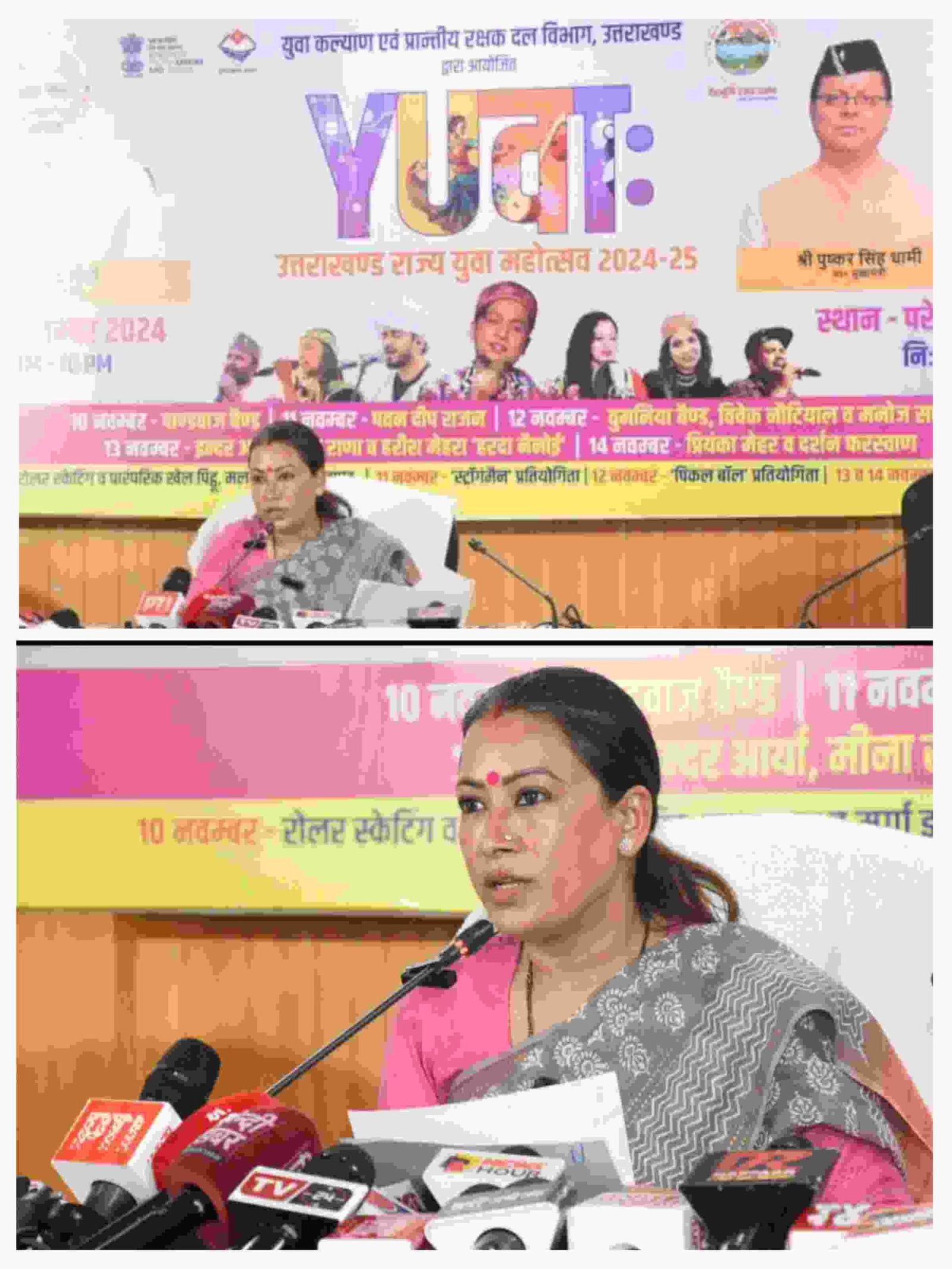 प्रदेश की खेल एवं युवा कल्याण मंत्री रेखा आर्या ने राजधानी देहरादून में प्रेस वार्ता कर शहर में होने वाले “युवा महोत्सव” के बारे में जानकारी दी