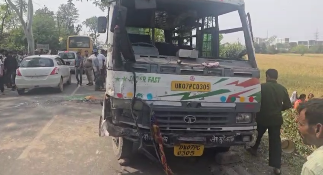 देहरादून माजरा से विकासनगर की तरफ आ रही बस लोडर से टकराई