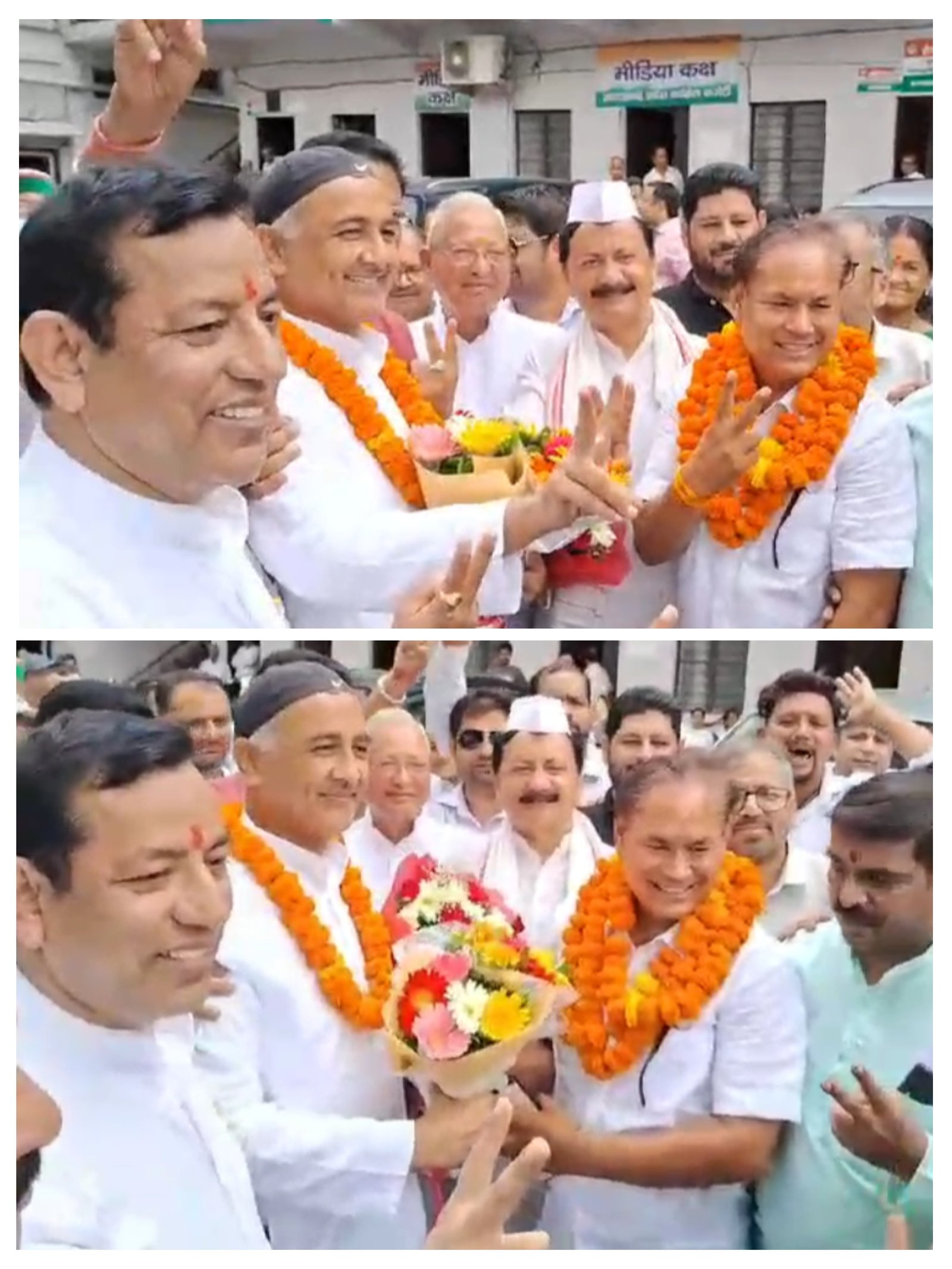 उपचुनाव में जीत के बाद पहली बार कांग्रेस मुख्यालय पहुंचे नवनिर्वाचित विधायक
