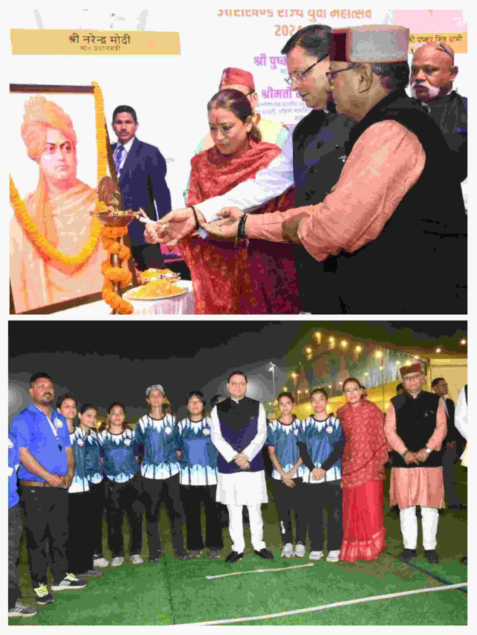 खेल मंत्री रेखा आर्या और मुख्यमंत्री पुष्कर सिंह धामी ने दीप प्रज्वलित कर युवा महोत्सव की विधिवत पूजन कर शुभारंभ किया ।